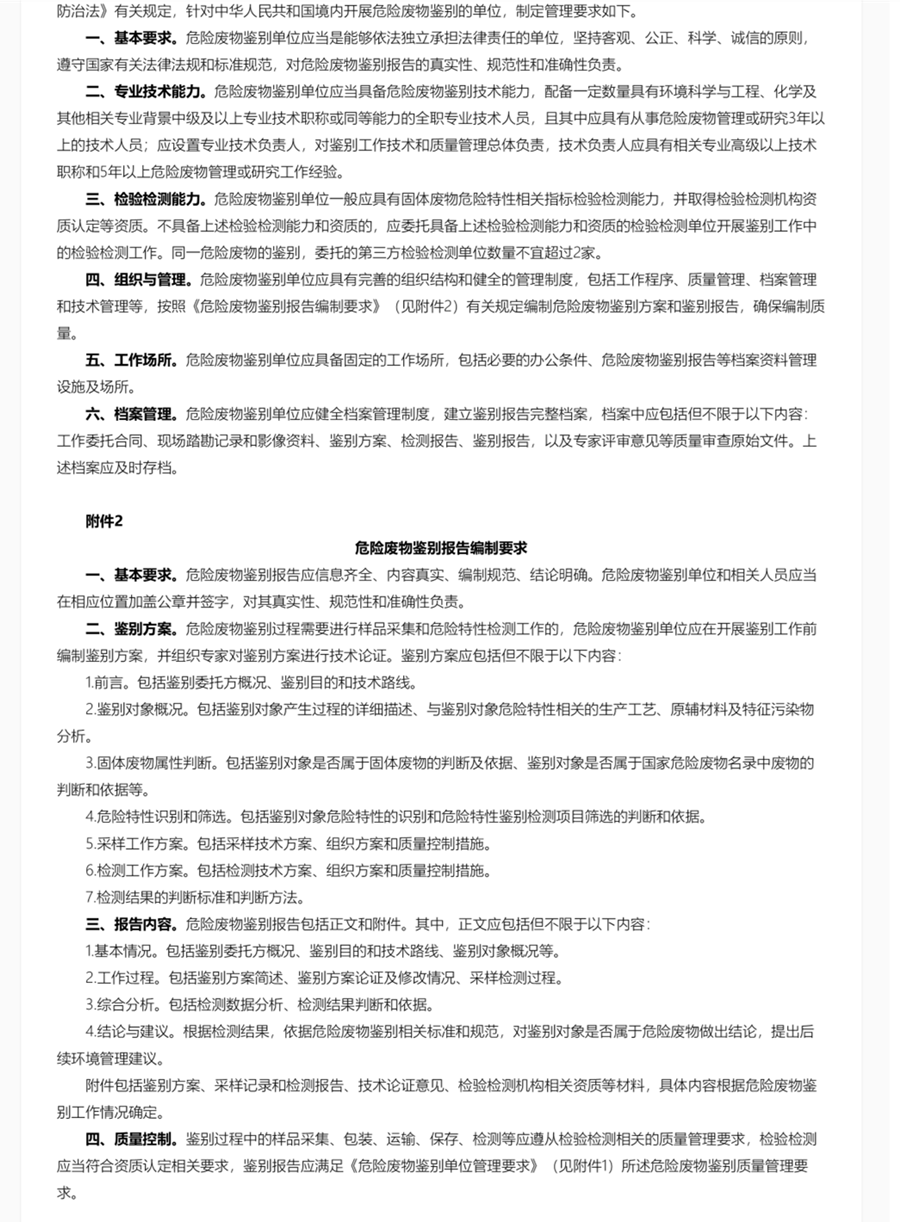 危險廢物鑒別單位應滿(mǎn)足《危險廢物鑒別單位管理要求》,并在全國危險廢物鑒別信息公開(kāi)服務(wù)平臺注冊。
